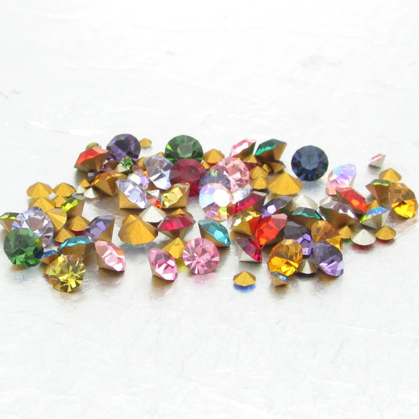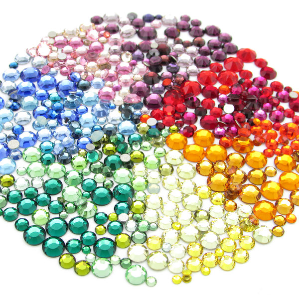 Rhinestones are imitation gemstones made from glass. Some glass is of the highest quality and called crystal. There are two basic ways of making faceted rhinestones. The older of the two methods TTC (or tin table cut). Molding machines press blobs of molten glass into faceted shapes. When the glass cools, only the top (the table) of each stone is cut by machine. In the second method, MC (or machine cut), all of a rhinestone's many facets are cut by precisely calibrated machines.